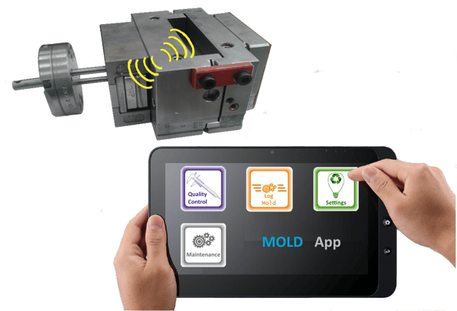 Industrie 4.0 elements are also being introduced in the injection mold industry. Smart devices are being integrated into tools of injection molding, for example to give feedback on how a mold is (mis)used and to monitor condition of a mold (e.g. for corrosion) contributing to a predictive maintenance and determine how a mold could be improved. Moreover, sensors and actuators can be used to incorporate active mechanisms in the mold that actively change some of the geometry on-the-fly based on real-time measurements or costumer needs